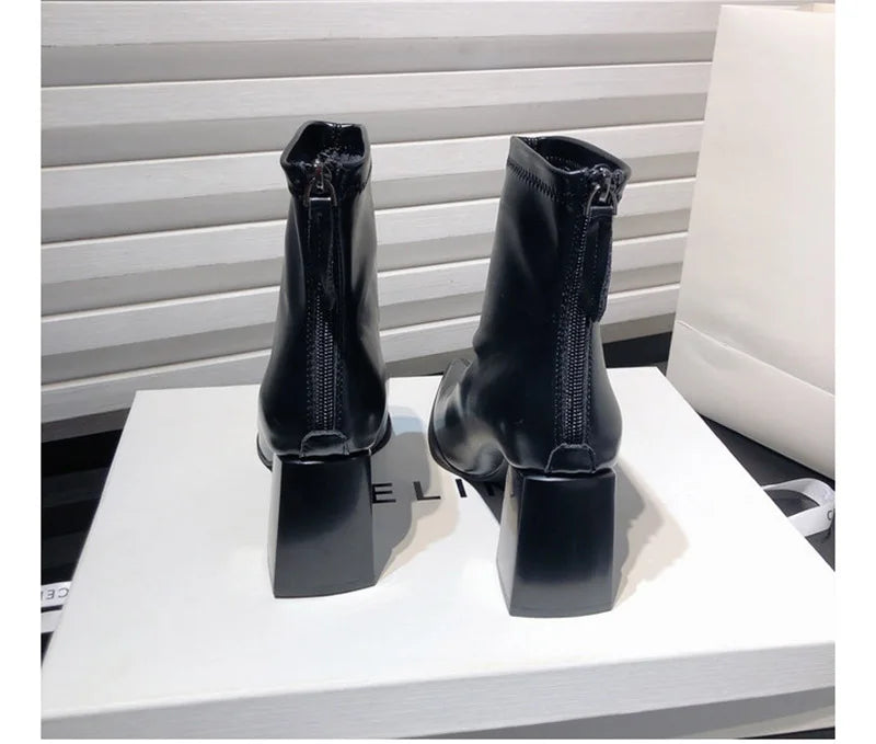 Il tacco sottile da 8 cm è l'altezza ideale per allungare la gamba senza compromettere la stabilità o il comfort. Grazie alla sua forma, il tacco bilancia perfettamente eleganza e praticità, rendendo questi stivaletti perfetti per lunghe giornate lavorative o serate speciali.