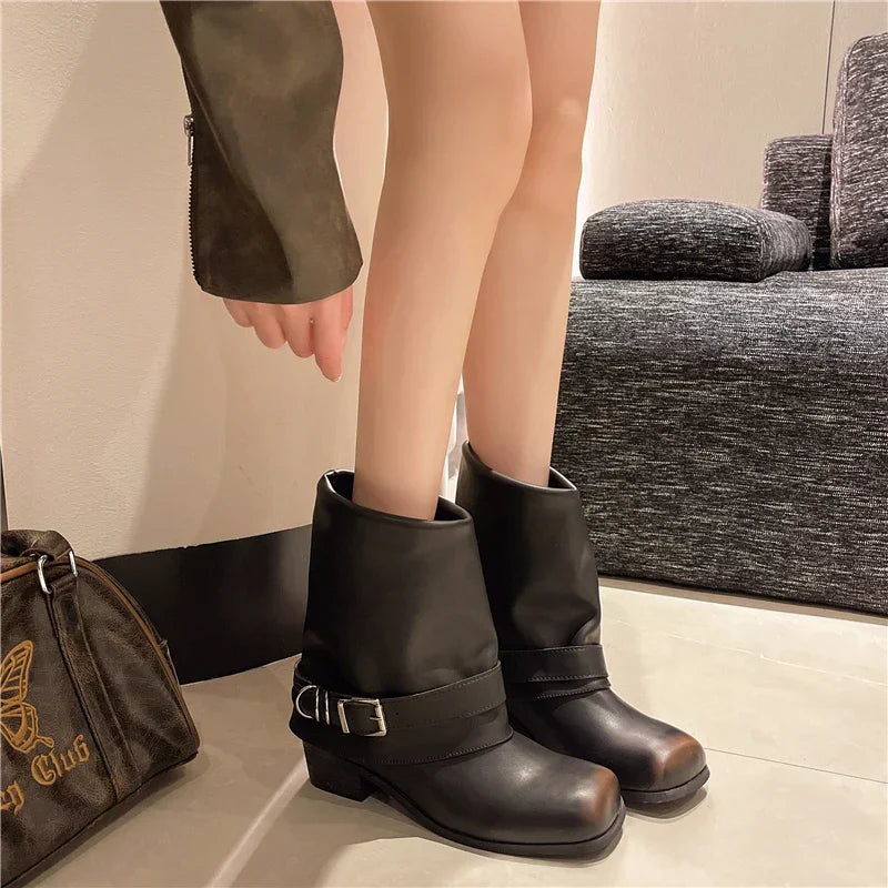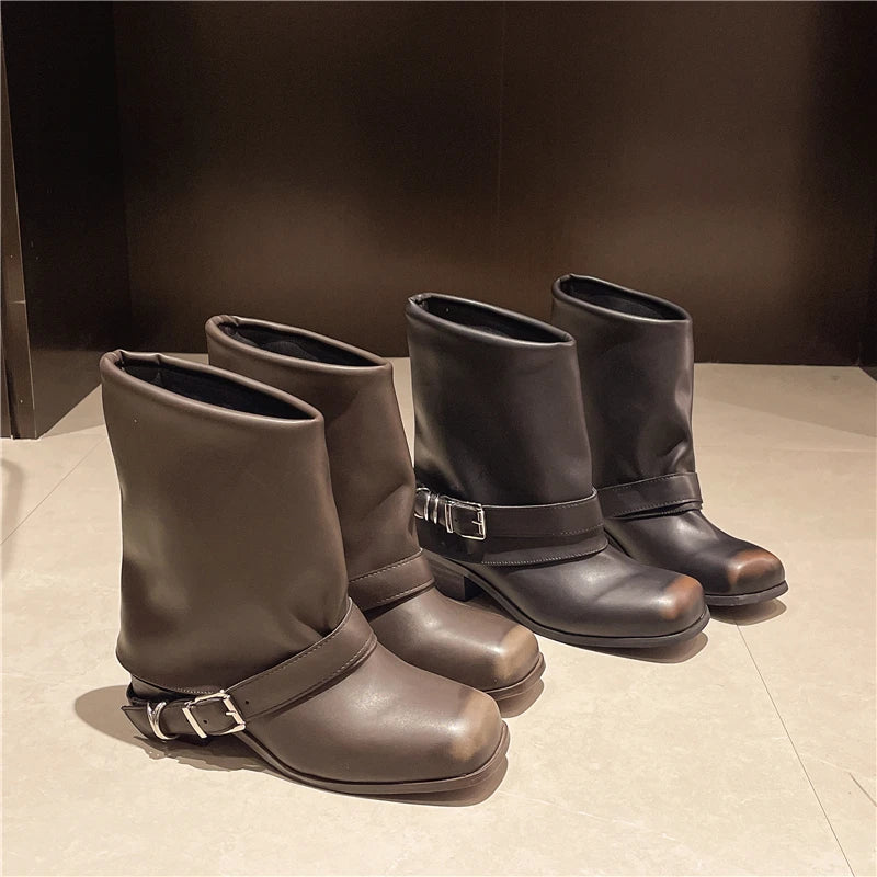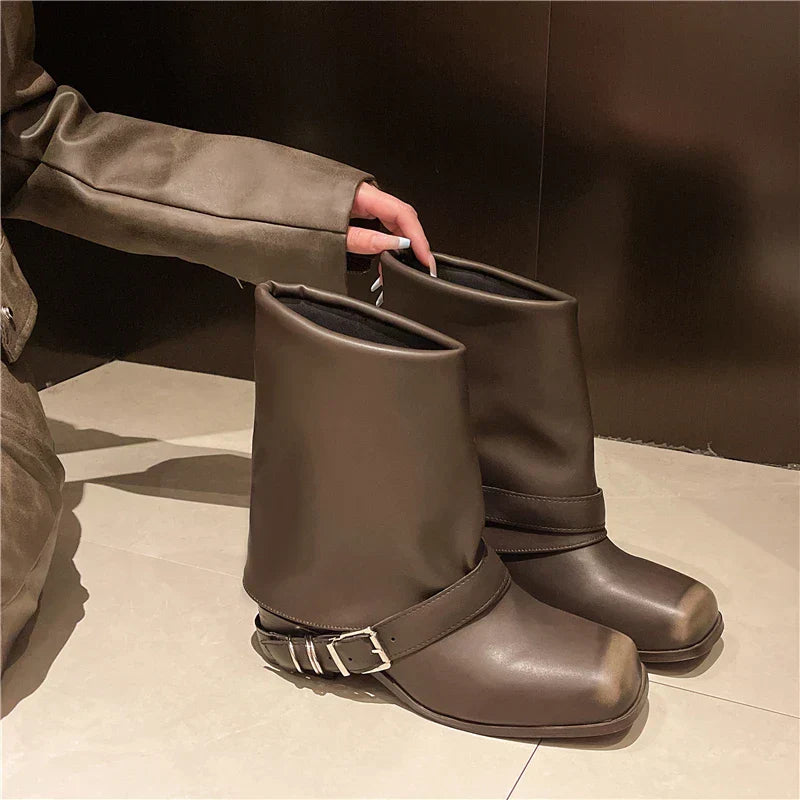 La particolarità di questi stivali risiede nella loro punta quadrata, un dettaglio distintivo che richiama le tendenze più attuali del design calzaturiero. La punta squadrata non solo offre un look moderno e originale, ma garantisce anche maggiore spazio e comfort per le dita, rendendoli perfetti per essere indossati tutto il giorno senza sacrificare la comodità. Questo design audace conferisce un'aria decisa e sofisticata, ideale per chi ama osare con stile.